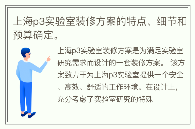 上海p3实验室装修方案的特点、细节和预算确定。