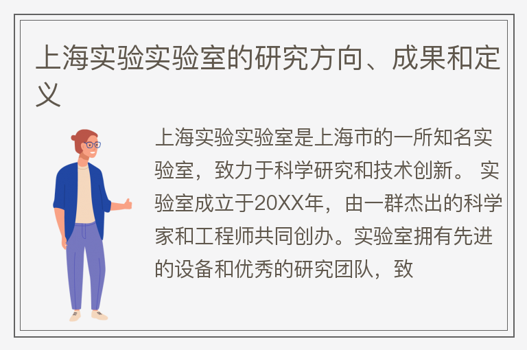 上海实验实验室的研究方向、成果和定义