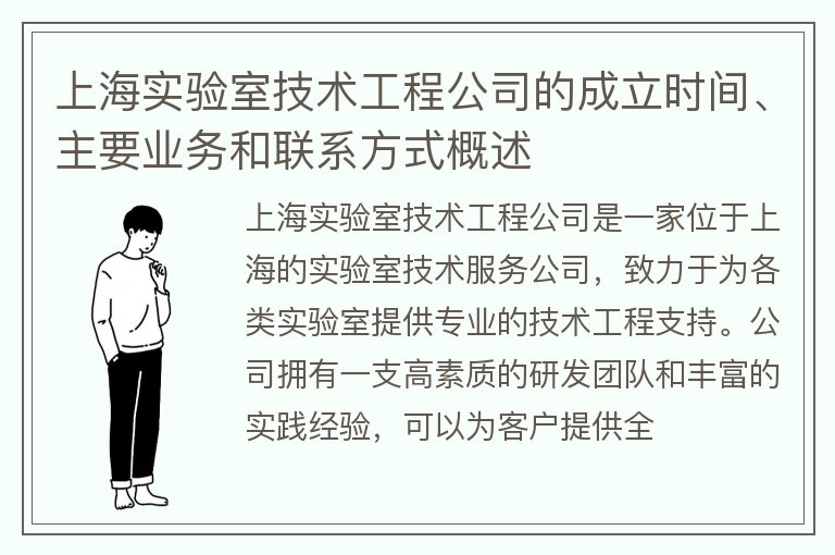 上海实验室技术工程公司的成立时间、主要业务和联系方式概述
