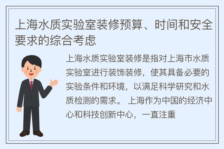 上海水质实验室装修预算、时间和安全要求的综合考虑
