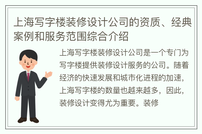 上海写字楼装修设计公司的资质、经典案例和服务范围综合介绍