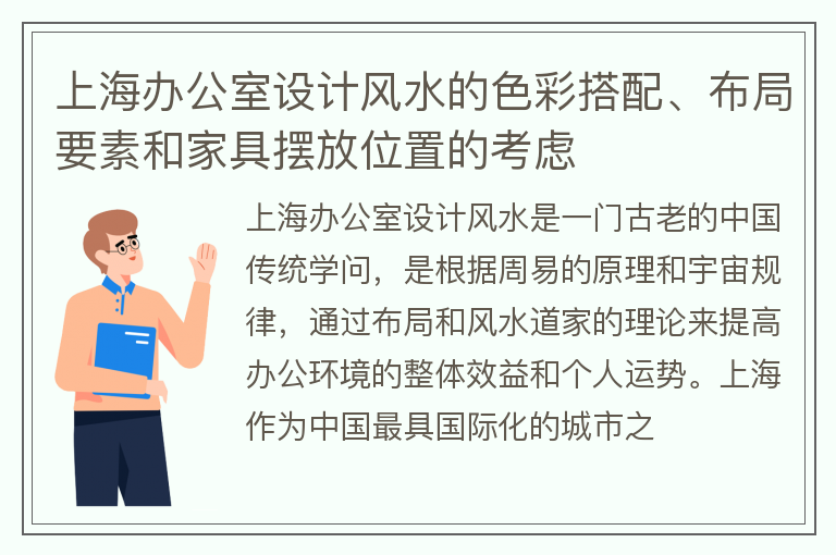 上海办公室设计风水的色彩搭配、布局要素和家具摆放位置的考虑