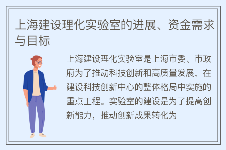 上海建设理化实验室是上海市委、市政府为了推动科技创新和高质量发展,在建设科技创新中心的整体格局中实施的重点工程。实验室的建设是为了提高创新能力,推动创新成果转化为......【点击详情】