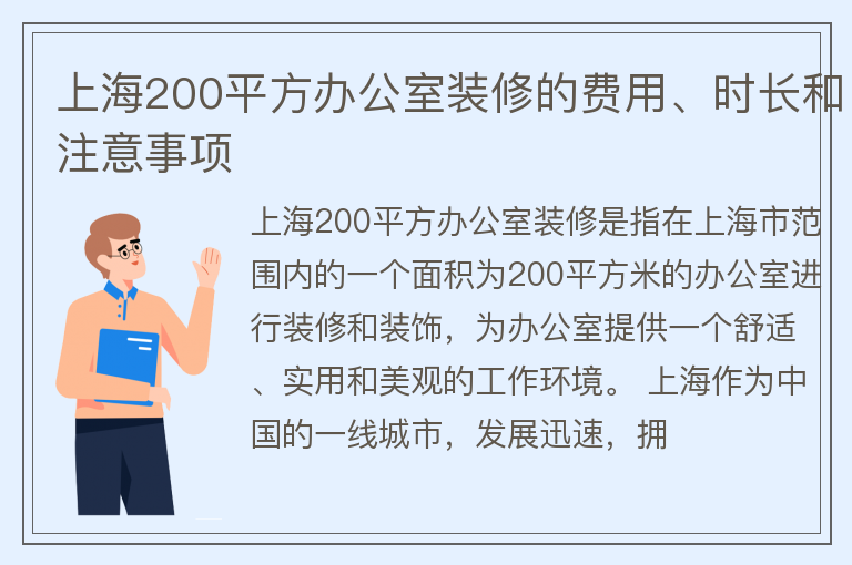 上海200平方办公室装修的费用、时长和注意事项
