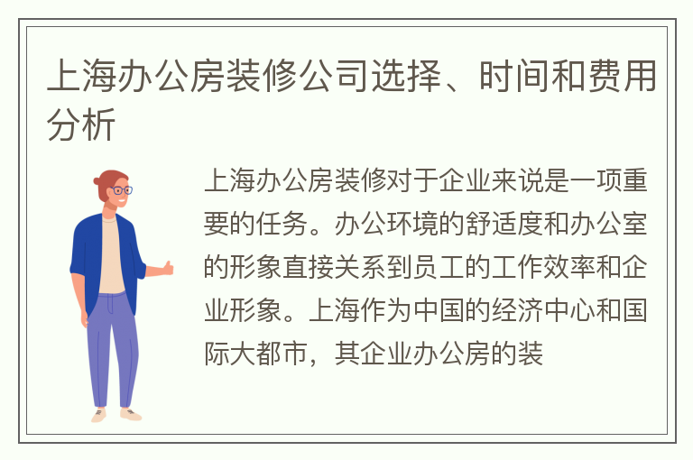 上海办公房装修公司选择、时间和费用分析