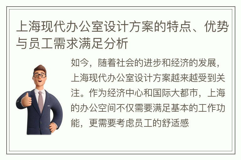 上海现代办公室设计方案的特点、优势与员工需求满足分析