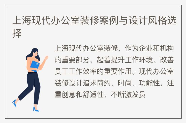 如今,随着社会的进步和经济的发展,上海现代办公室设计方案越来越受到关注。作为经济中心和国际大都市,上海的办公空间不仅需要满足基本的工作功能,更需要考虑员工的舒适感......【点击详情】