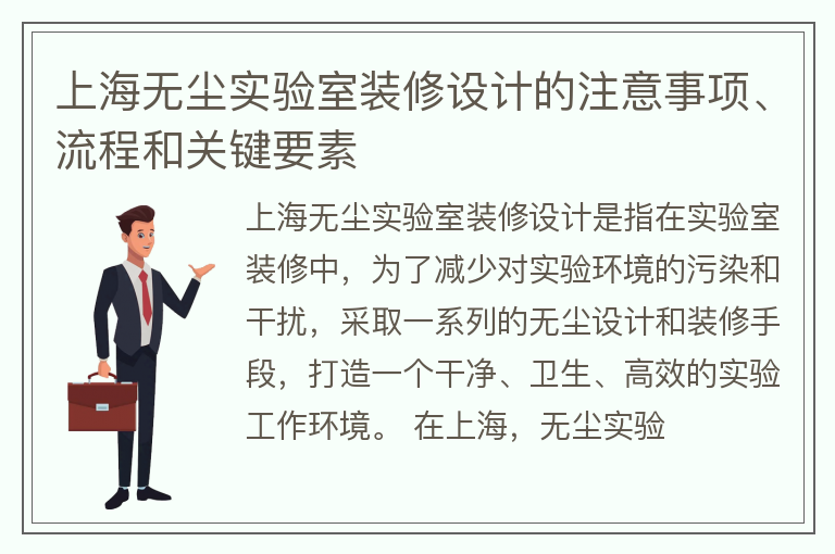 上海无尘实验室装修设计的注意事项、流程和关键要素