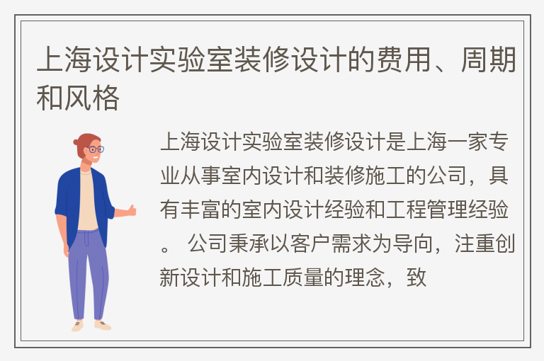 上海设计实验室装修设计的费用、周期和风格
