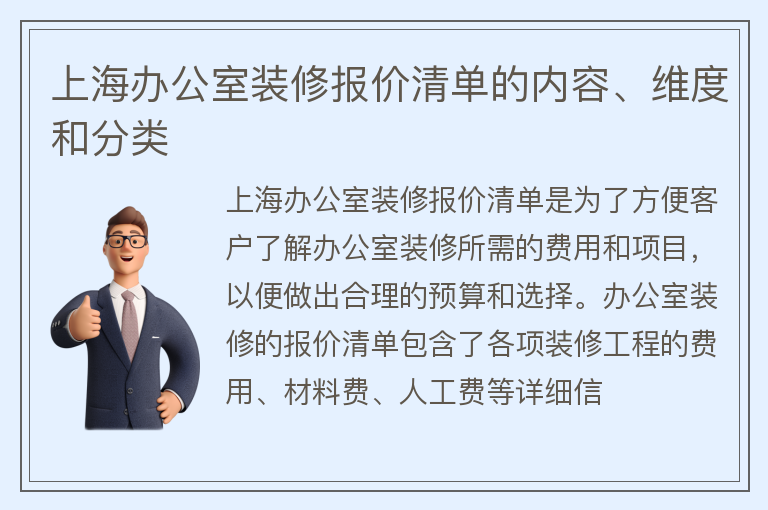 上海办公室装修报价清单的内容、维度和分类
