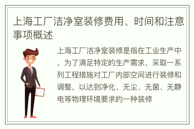 上海工厂洁净室装修费用、时间和注意事项概述