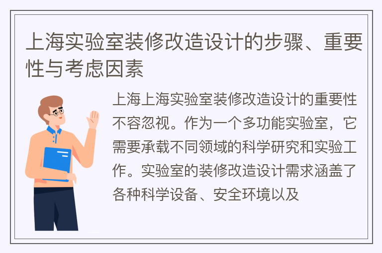 上海实验室装修改造设计的步骤、重要性与考虑因素