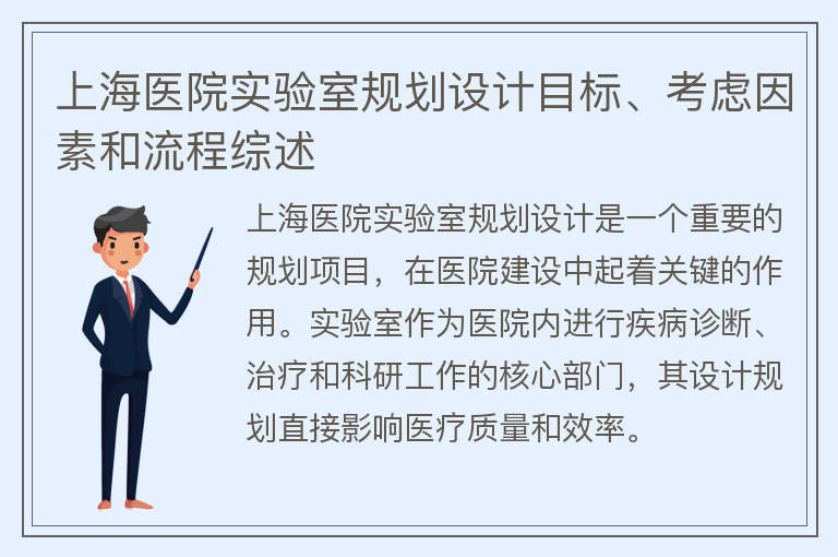 上海医院实验室规划设计目标、考虑因素和流程综述