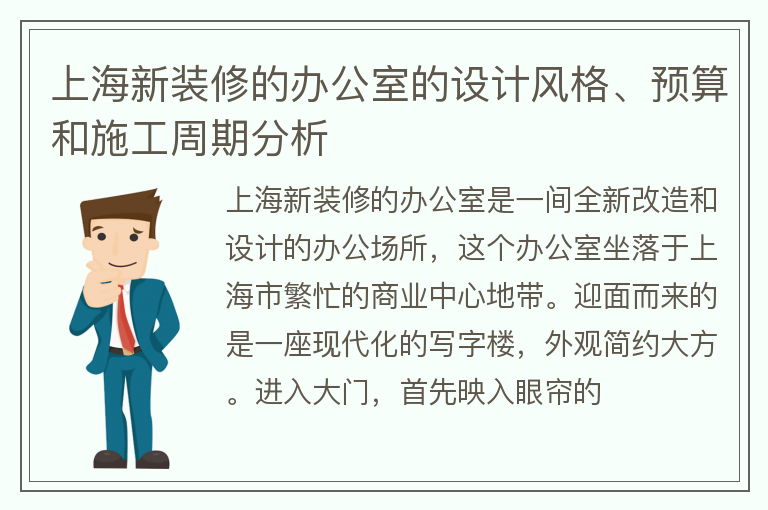 上海新装修的办公室的设计风格、预算和施工周期分析