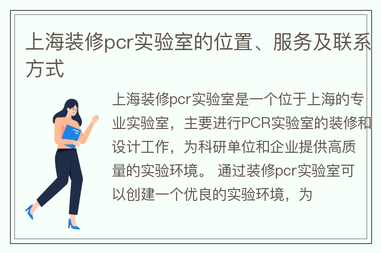 上海装修pcr实验室的位置、服务及联系方式