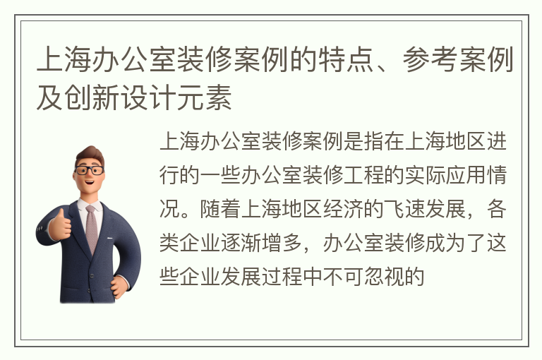 上海办公室装修案例的特点、参考案例及创新设计元素