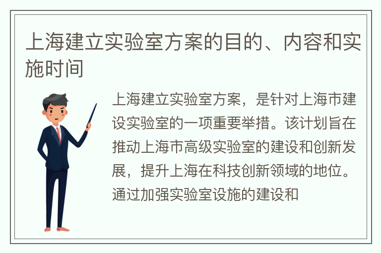 上海建立实验室方案的目的、内容和实施时间