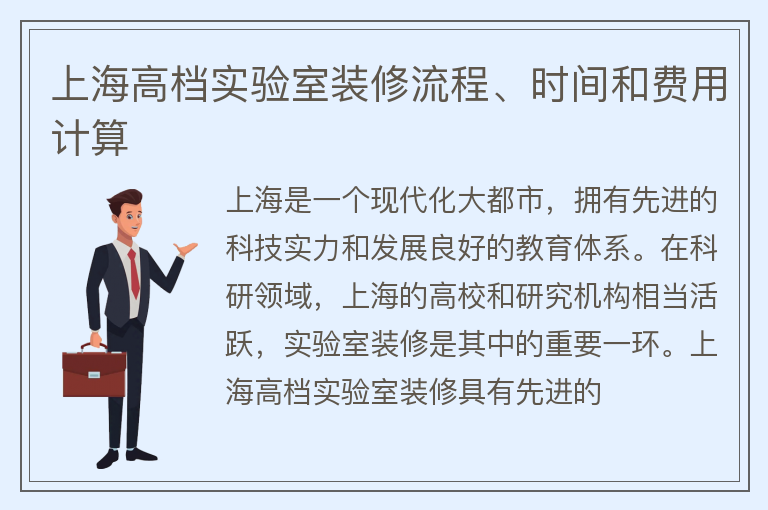 上海高档实验室装修流程、时间和费用计算
