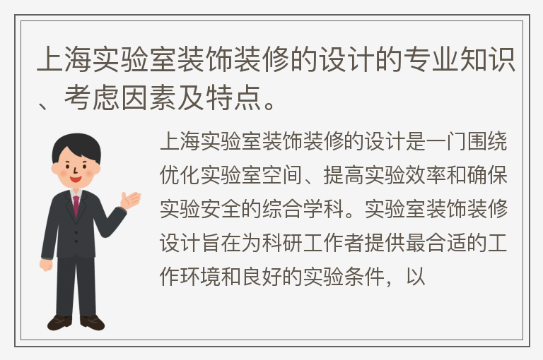 上海实验室装饰装修的设计的专业知识、考虑因素及特点。