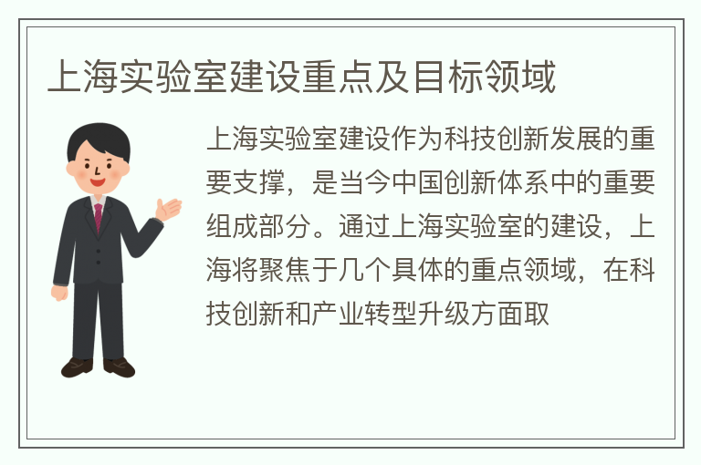 上海实验室建设作为科技创新发展的重要支撑,是当今中国创新体系中的重要组成部分。通过上海实验室的建设,上海将聚焦于几个具体的重点领域,在科技创新和产业转型升级方面取......【点击详情】