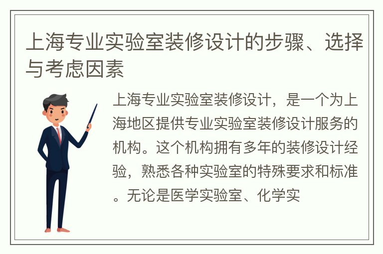 上海专业实验室装修设计的步骤、选择与考虑因素