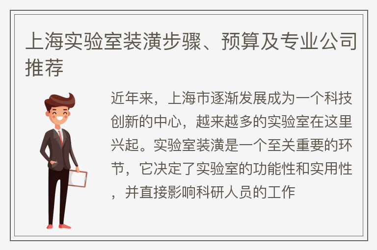 近年来,上海市逐渐发展成为一个科技创新的中心,越来越多的实验室在这里兴起。实验室装潢是一个至关重要的环节,它决定了实验室的功能性和实用性,并直接影响科研人员的工作......【点击详情】