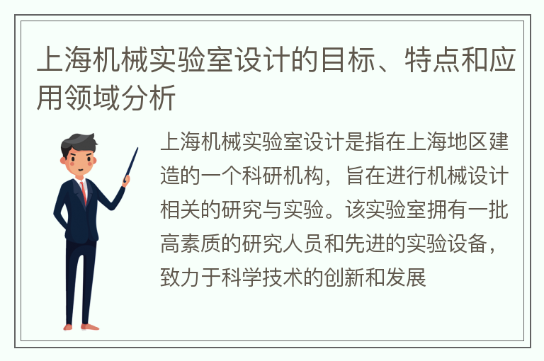 上海机械实验室设计是指在上海地区建造的一个科研机构,旨在进行机械设计相关的研究与实验。该实验室拥有一批高素质的研究人员和先进的实验设备,致力于科学技术的创新和发展......【点击详情】