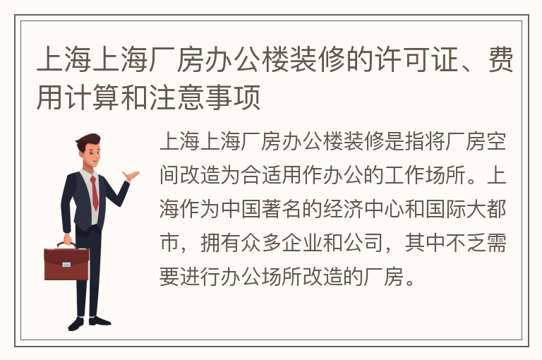 上海上海厂房办公楼装修的许可证、费用计算和注意事项