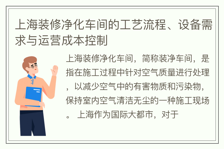 上海装修净化车间的工艺流程、设备需求与运营成本控制
