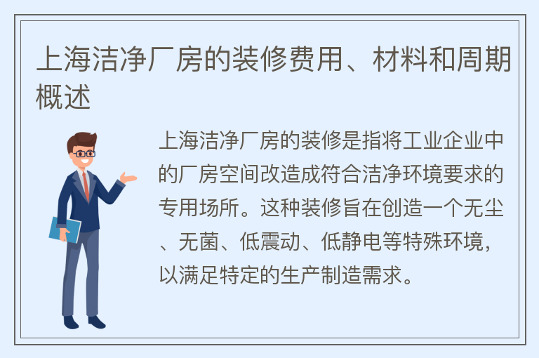 上海洁净厂房的装修费用、材料和周期概述