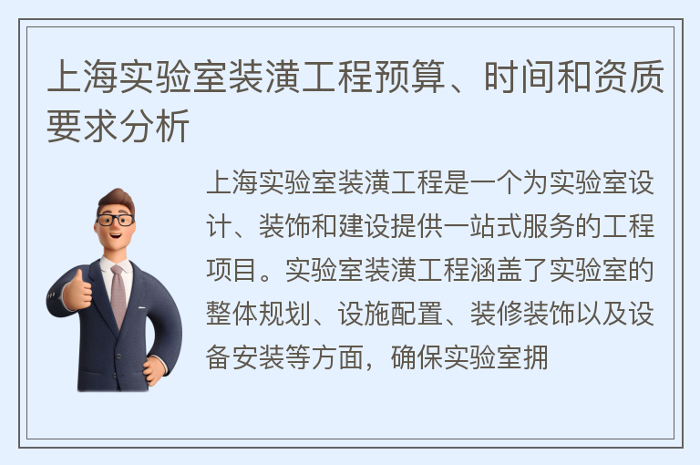 上海实验室装潢工程预算、时间和资质要求分析