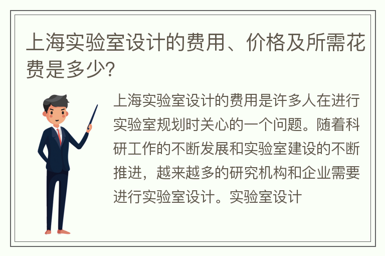 上海实验室设计的费用是许多人在进行实验室规划时关心的一个问题。随着科研工作的不断发展和实验室建设的不断推进,越来越多的研究机构和企业需要进行实验室设计。实验室设计......【点击详情】