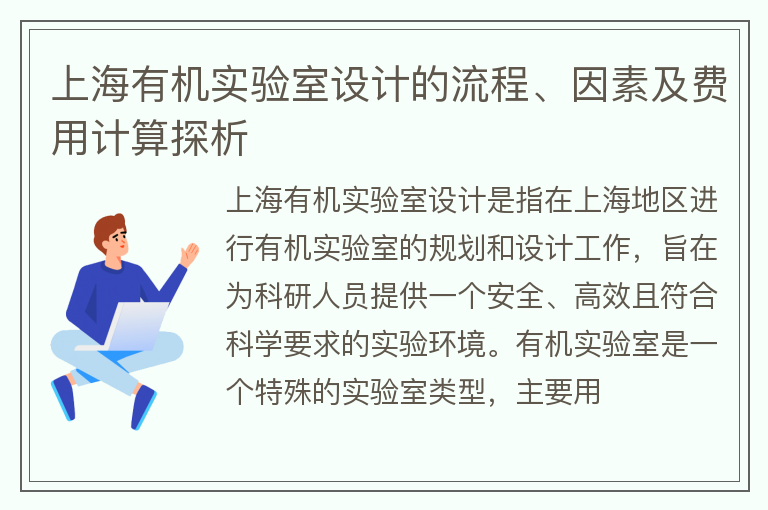 上海有机实验室设计是指在上海地区进行有机实验室的规划和设计工作,旨在为科研人员提供一个安全、高效且符合科学要求的实验环境。有机实验室是一个特殊的实验室类型,主要用......【点击详情】