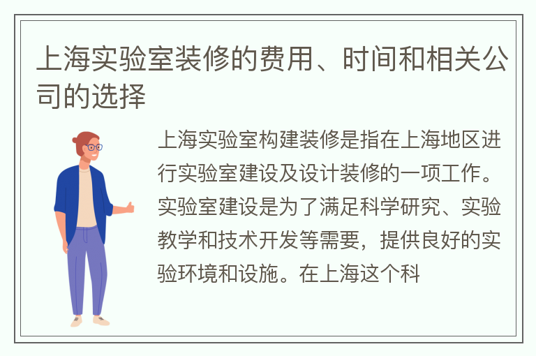 上海实验室构建装修是指在上海地区进行实验室建设及设计装修的一项工作。实验室建设是为了满足科学研究、实验教学和技术开发等需要,提供良好的实验环境和设施。在上海这个科......【点击详情】