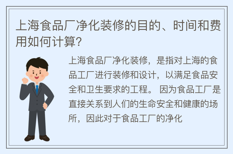 上海食品厂净化装修的目的、时间和费用如何计算?