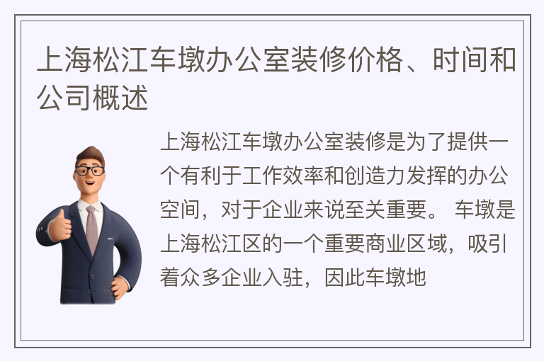 上海松江车墩办公室装修是为了提供一个有利于工作效率和创造力发挥的办公空间,对于企业来说至关重要。 车墩是上海松江区的一个重要商业区域,吸引着众多企业入驻,因此车墩地......【点击详情】