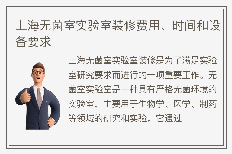 上海实验室建设环境的要求、条件和具体要求是什么?