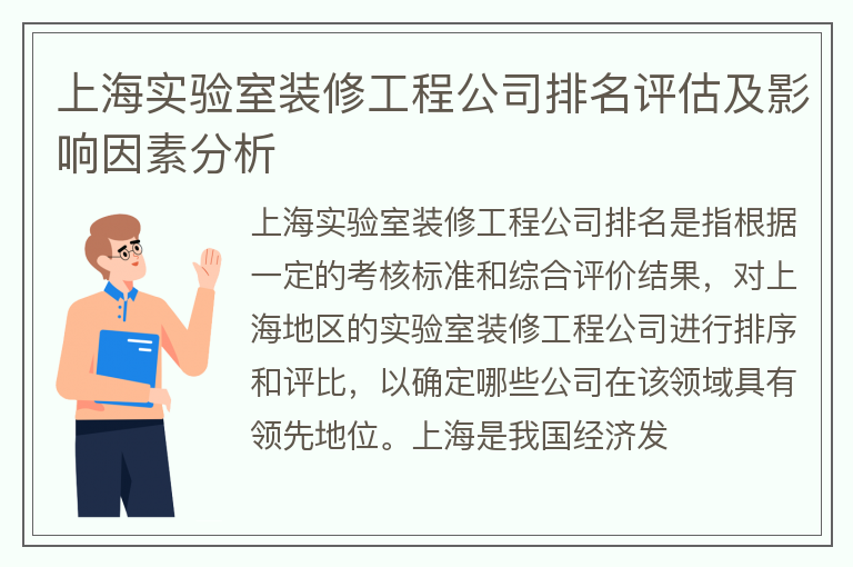 上海实验室装修工程公司排名是指根据一定的考核标准和综合评价结果,对上海地区的实验室装修工程公司进行排序和评比,以确定哪些公司在该领域具有领先地位。上海是我国经济发......【点击详情】