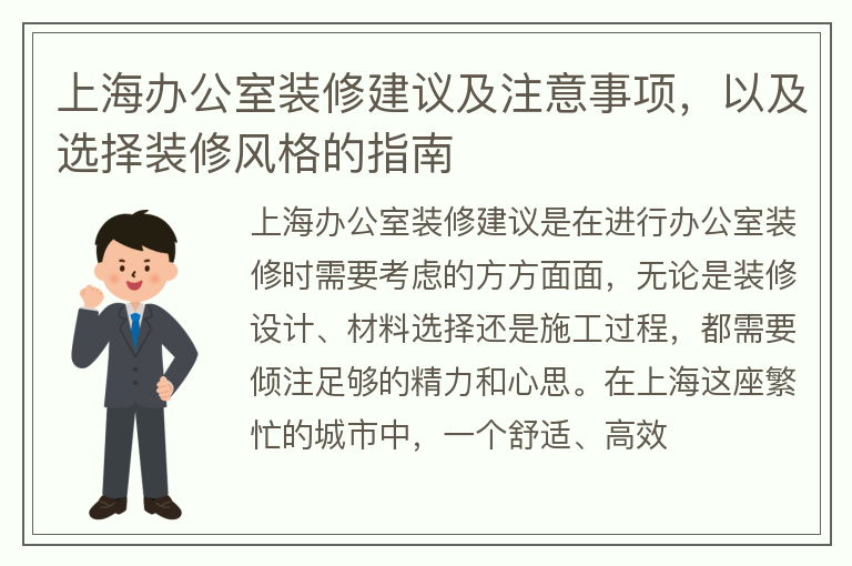上海办公室装修建议及注意事项,以及选择装修风格的指南