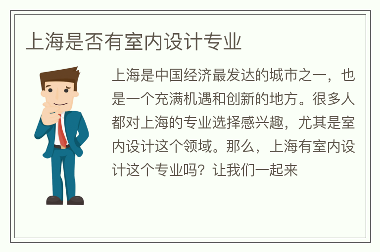 上海是中国经济最发达的城市之一,也是一个充满机遇和创新的地方。很多人都对上海的专业选择感兴趣,尤其是室内设计这个领域。那么,上海有室内设计这个专业吗?让我们一起来......【点击详情】