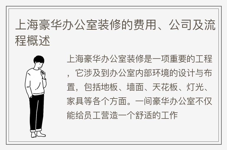上海豪华办公室装修是一项重要的工程,它涉及到办公室内部环境的设计与布置,包括地板、墙面、天花板、灯光、家具等各个方面。一间豪华办公室不仅能给员工营造一个舒适的工作......【点击详情】