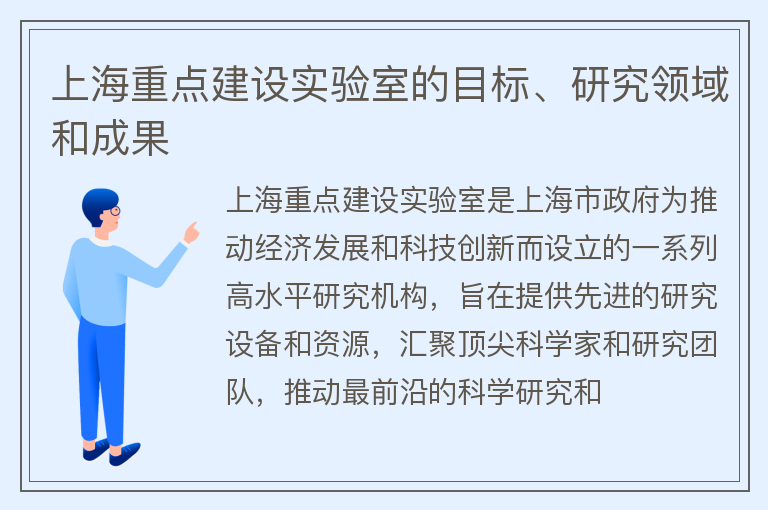 上海重点建设实验室是上海市政府为推动经济发展和科技创新而设立的一系列高水平研究机构,旨在提供先进的研究设备和资源,汇聚顶尖科学家和研究团队,推动最前沿的科学研究和......【点击详情】