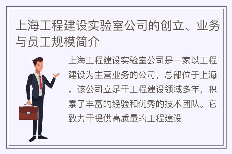 上海工程建设实验室公司的创立、业务与员工规模简介
