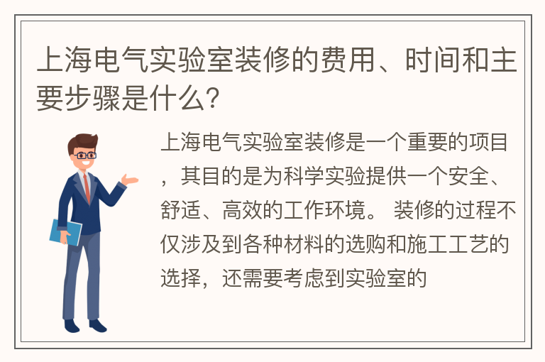 上海电气实验室装修的费用、时间和主要步骤是什么?