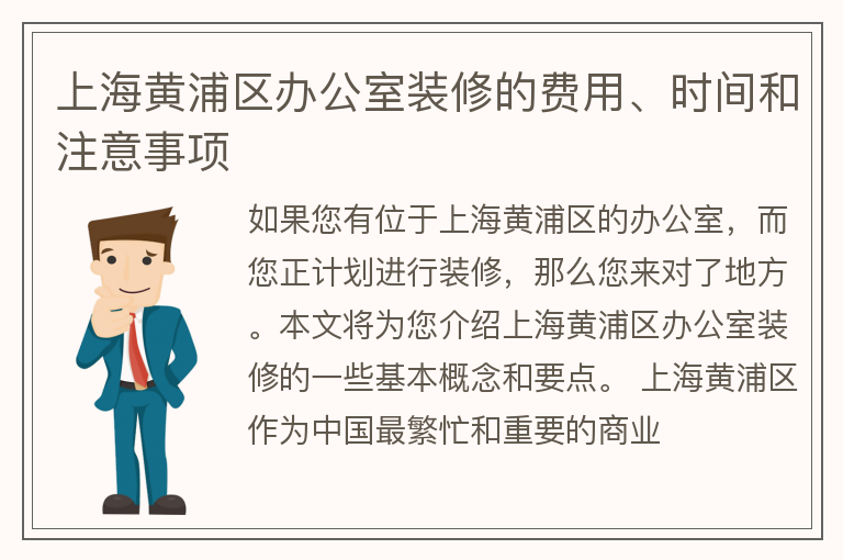 如果您有位于上海黄浦区的办公室,而您正计划进行装修,那么您来对了地方。本文将为您介绍上海黄浦区办公室装修的一些基本概念和要点。 上海黄浦区作为中国最繁忙和重要的商业......【点击详情】
