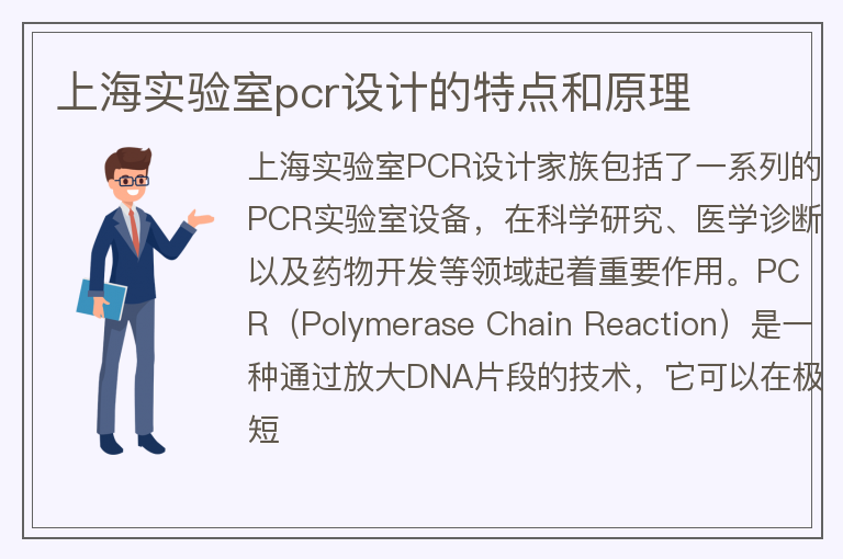 上海实验室PCR设计家族包括了一系列的PCR实验室设备,在科学研究、医学诊断以及药物开发等领域起着重要作用。PCR(Polymerase Chain Reaction)是一种通过放大DNA片段的技术,它可以在极短......【点击详情】