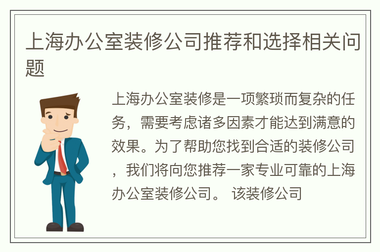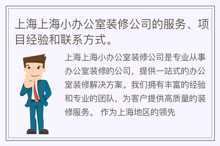 上海上海小办公室装修公司的服务、项目经验和联系方式。