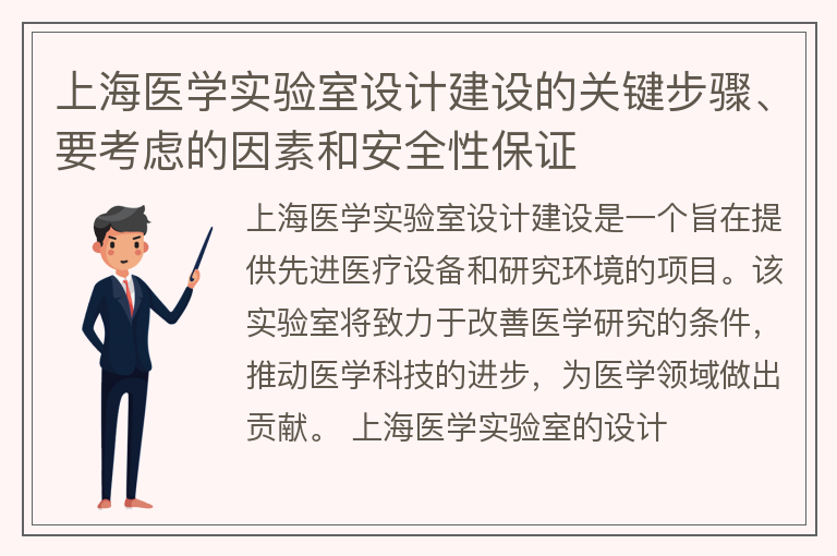 上海医学实验室设计建设的关键步骤、要考虑的因素和安全性保证