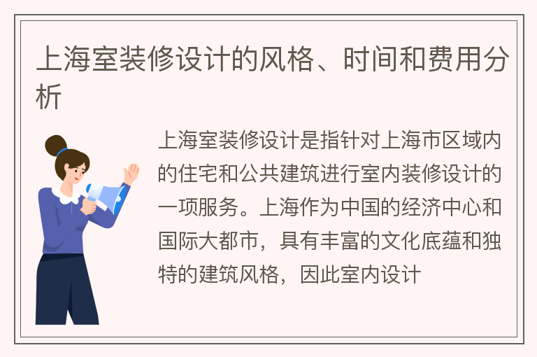 上海室装修设计是指针对上海市区域内的住宅和公共建筑进行室内装修设计的一项服务。上海作为中国的经济中心和国际大都市,具有丰富的文化底蕴和独特的建筑风格,因此室内设计......【点击详情】