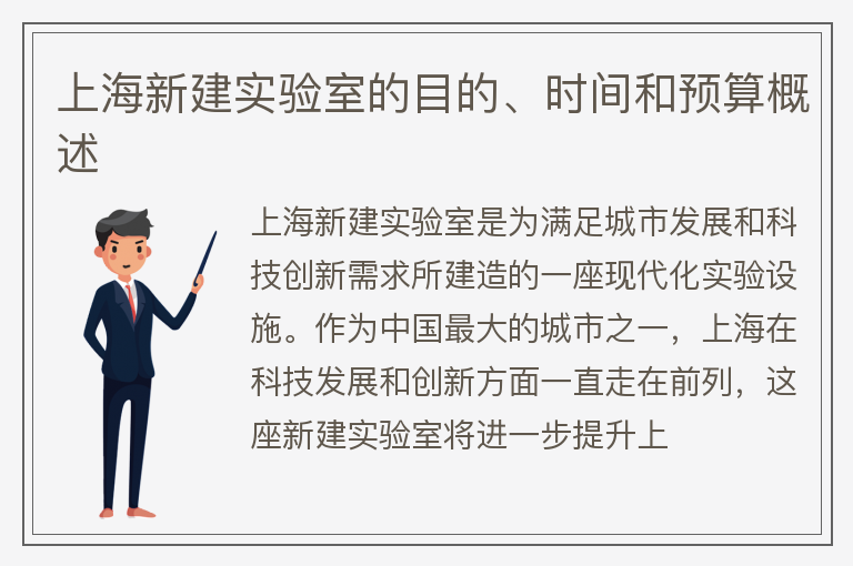 上海新建实验室是为满足城市发展和科技创新需求所建造的一座现代化实验设施。作为中国最大的城市之一,上海在科技发展和创新方面一直走在前列,这座新建实验室将进一步提升上......【点击详情】